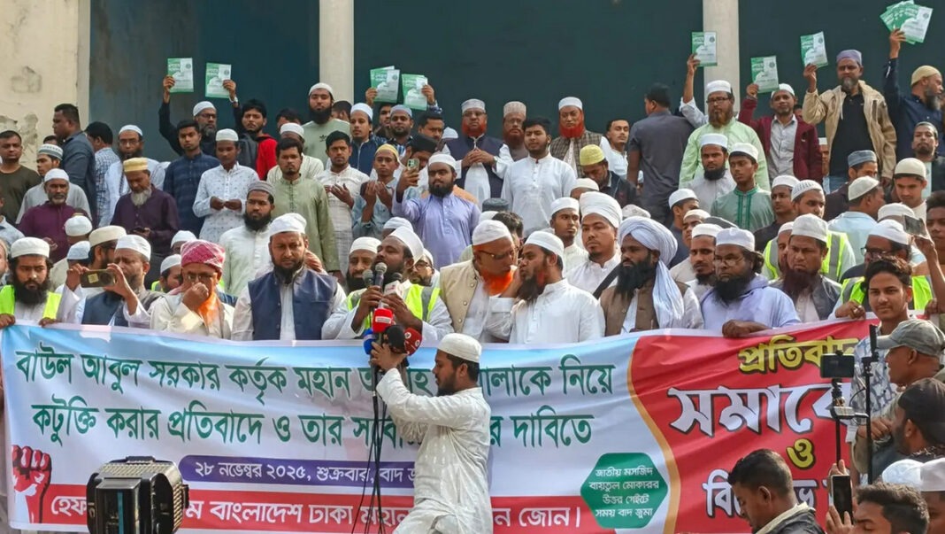 আজ শুক্রবার (২৮ নভেম্বর) বাদ জুমা বায়তুল মোকাররম জাতীয় মসজিদের উত্তর গেটে ঢাকা মহানগর পল্টন জোন হেফাজতের উদ্যোগে এ সমাবেশ অনুষ্ঠিত হয়।