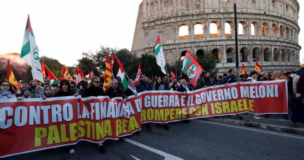 ইতালির রোমে বিক্ষোভে অংশ নেন জাতিসংঘের বিশেষ দূত ফ্রান্সেসকা আলবানিজ এবং জলবায়ু কর্মী গ্রেটা থানবার্গ।