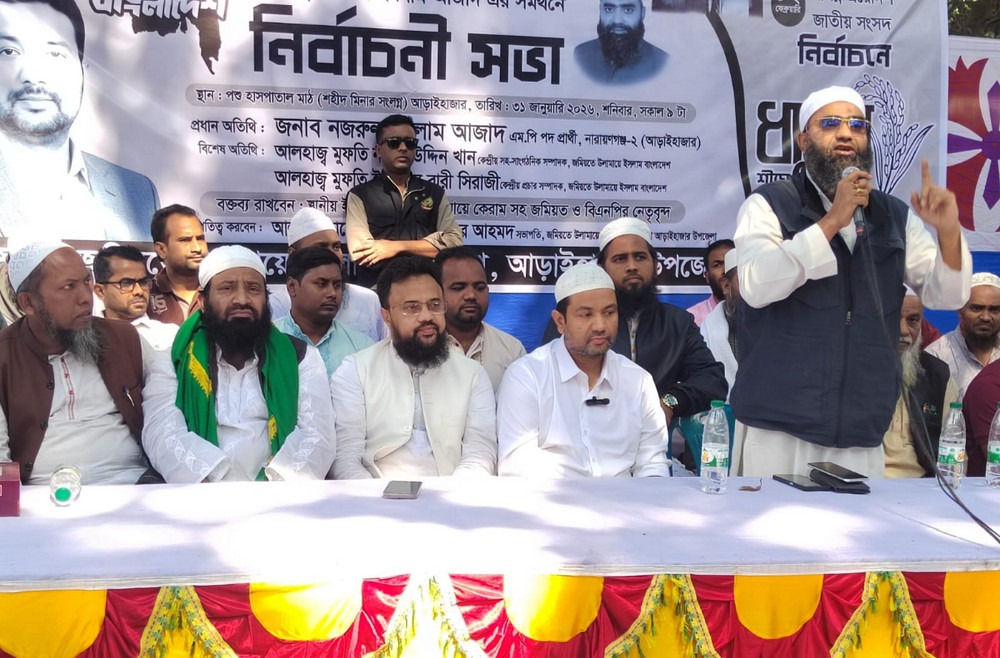 উপজেলা জমিয়তের সভাপতি মাওলানা মাসরুর আহমদের সভাপতিত্বে এবং মাওলানা মারুফ বিল্লাহ মাদানী ও মাওলানা নকিবুল ইসলামের যৌথ পরিচালনায় প্রধান অতিথির বক্তব্য রাখেন নারায়ণগঞ্জ-২ (আড়াইহাজার) আসনের মনোনীত প্রার্থী ও বিএনপির কেন্দ্রীয় সহ-সাংগঠনিক সম্পাদক নজরুল ইসলাম আজাদ।