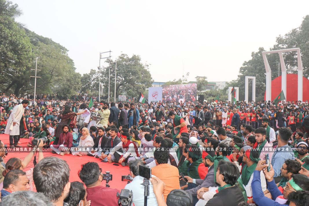 আজ মঙ্গলবার (৩১ ডিসেম্বর) দুপুরে রাজধানীর কেন্দ্রীয় শহীদ মিনারে এ কর্মসূচি অনুষ্ঠিত হয়। এতে সকাল থেকেই দেশের বিভিন্ন প্রান্ত থেকে লোকজন ছোট ছোট মিছিল নিয়ে স্লোগান দিতে দিতে অংশগ্রহণ করতে শুরু করে শিক্ষার্থীরা।